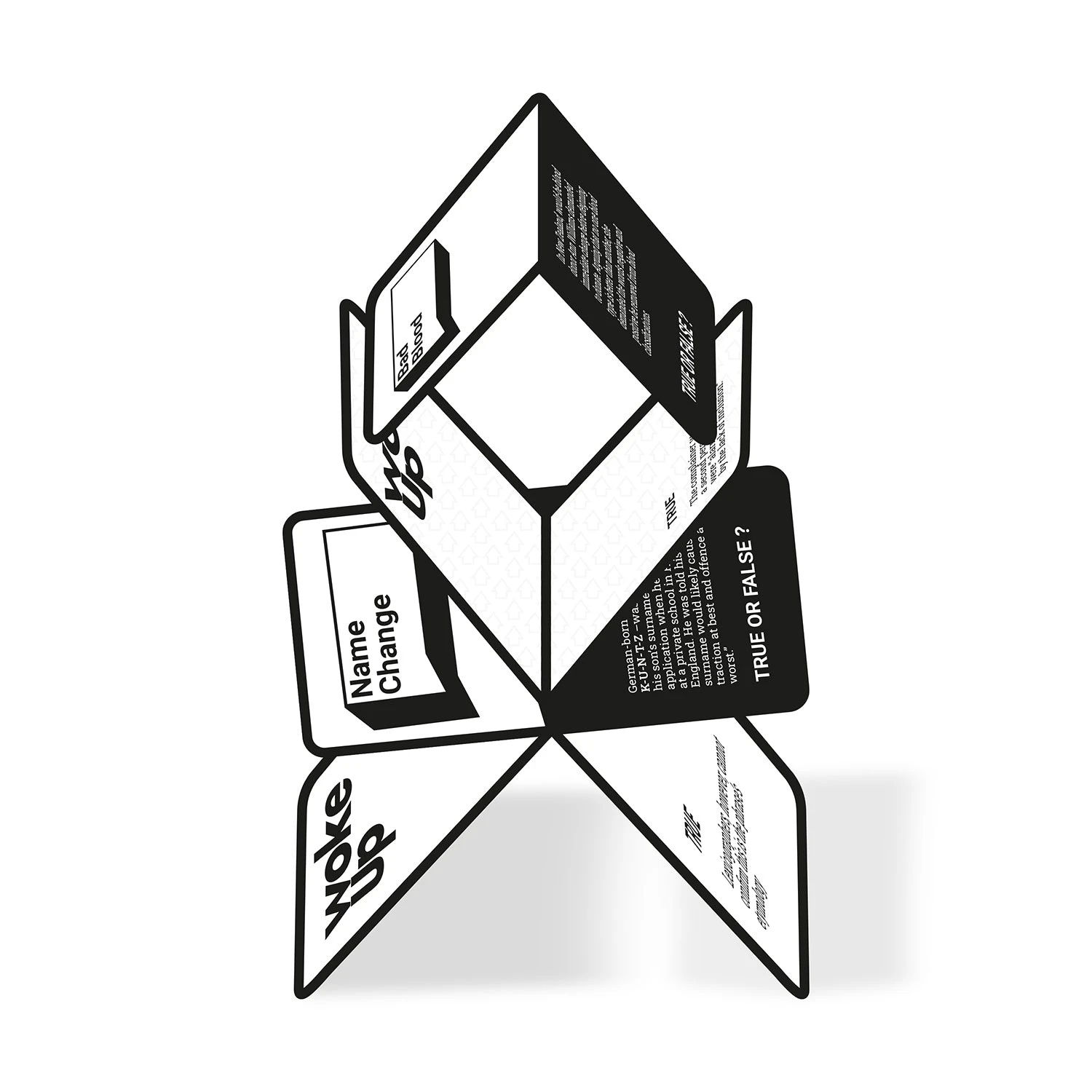 The true or false trivia cards contain news stories relating to woke culture. YouÕve gotta decide if you think the story is real or fake. Get it right and keep the cardÉ Fold it in half, stack it, and bask in the glory of how much taller your tower is than anyone elseÕs Ð especially your parents!