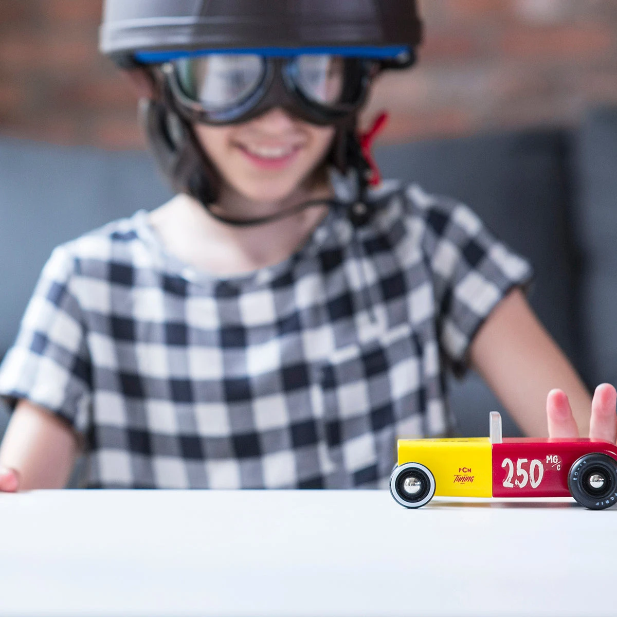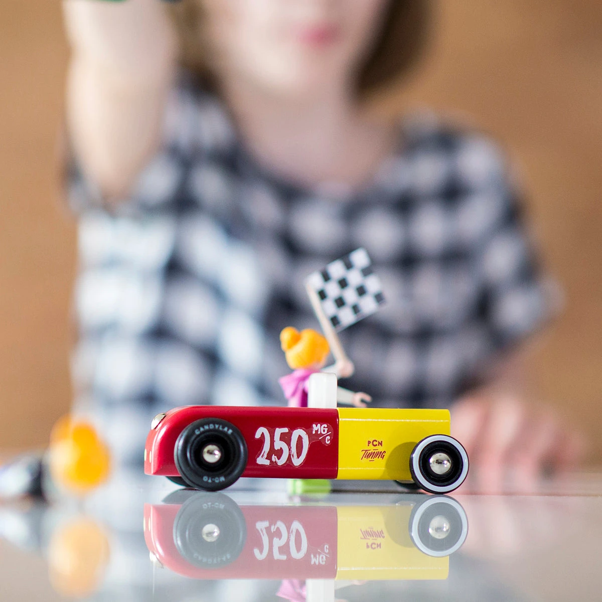The Outlaws are 1920’s inspired, vintage wooden cars. Candylab took cues from a mix of Art Deco modernism and the daredevil, rough and oily car culture of those years. In our era of clean, immediate digital entertainment, they wanted to bring some of these stories back, blending keen design, old-fashioned playtime and some storytelling.