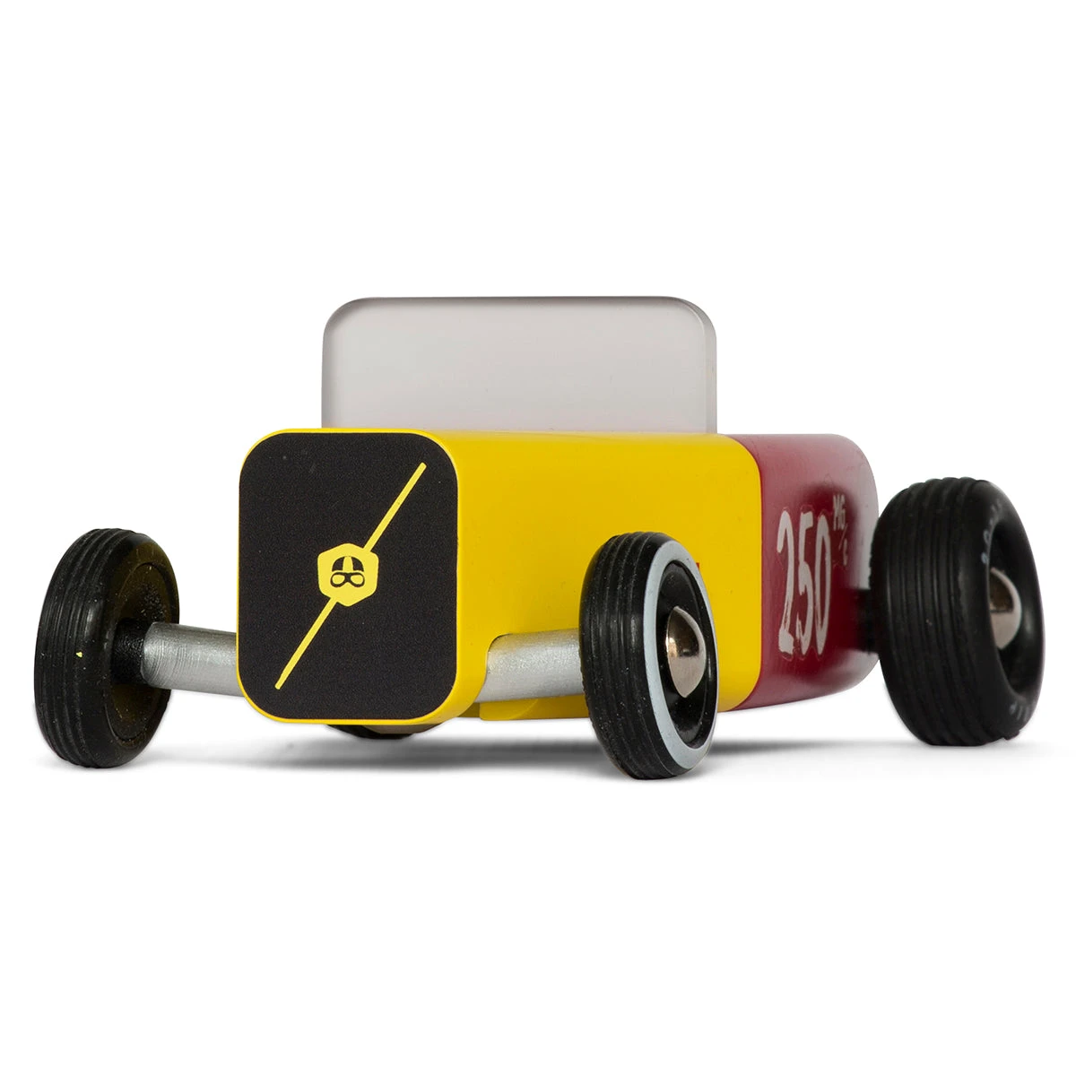 The Penicillin is a yellow and red pill of a lowriding roadster, bearing the 250mg race number. The first open top Candylab car, it’s sure to stand out in any toy collection.