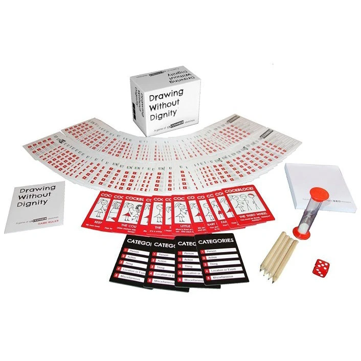 Also includes game rules, timer, die, pretty box, drawing pad, and golf pencils no one will ever use but we included so you don’t call us cheap.